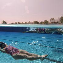 Das Schwimmbecken ist 50 m lang, hat auf einer Breite von 21 m insgesamt 8 Bahnen und ist durchgängig 1,80 m tief – dadurch erfüllt es alle Voraussetzungen fürs Wettkampf-Schwimmen. Direkt daneben ist ein separater Sprungbereich, 3,90 m tief, mit einem 1 m und 3 m Sprungbrett. 2.600 qm Wasserfläche, 1,80 m tief, 50 m Sportbahn, 1 m und 3 m Sprungbrett, 8 Feld Trampolinanlage, 3 Beachvolleyball Felder, Tischtennis, Fußball und vieles mehr.